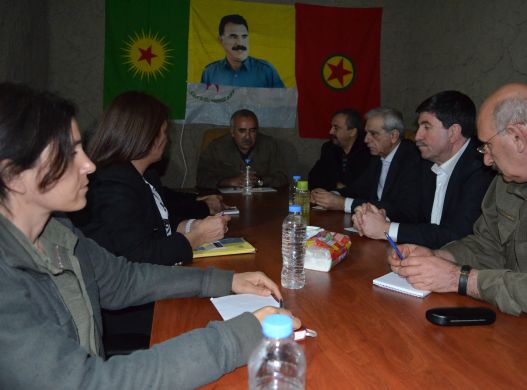 Bu fotoğrafın yer verildiği PKK çizgisindeki yayınlarda görüşmenin PKK'nın Kandil'deki kampında yapıldığı belirtildi.